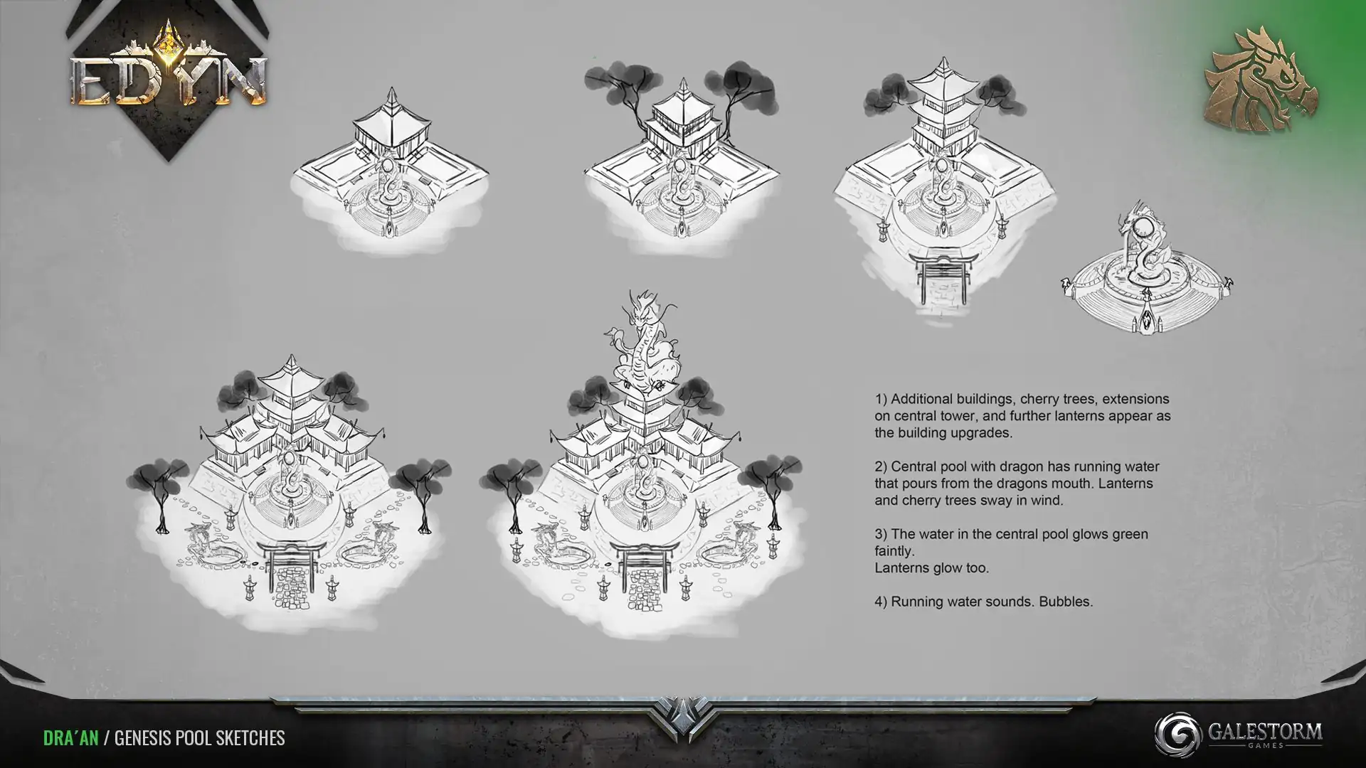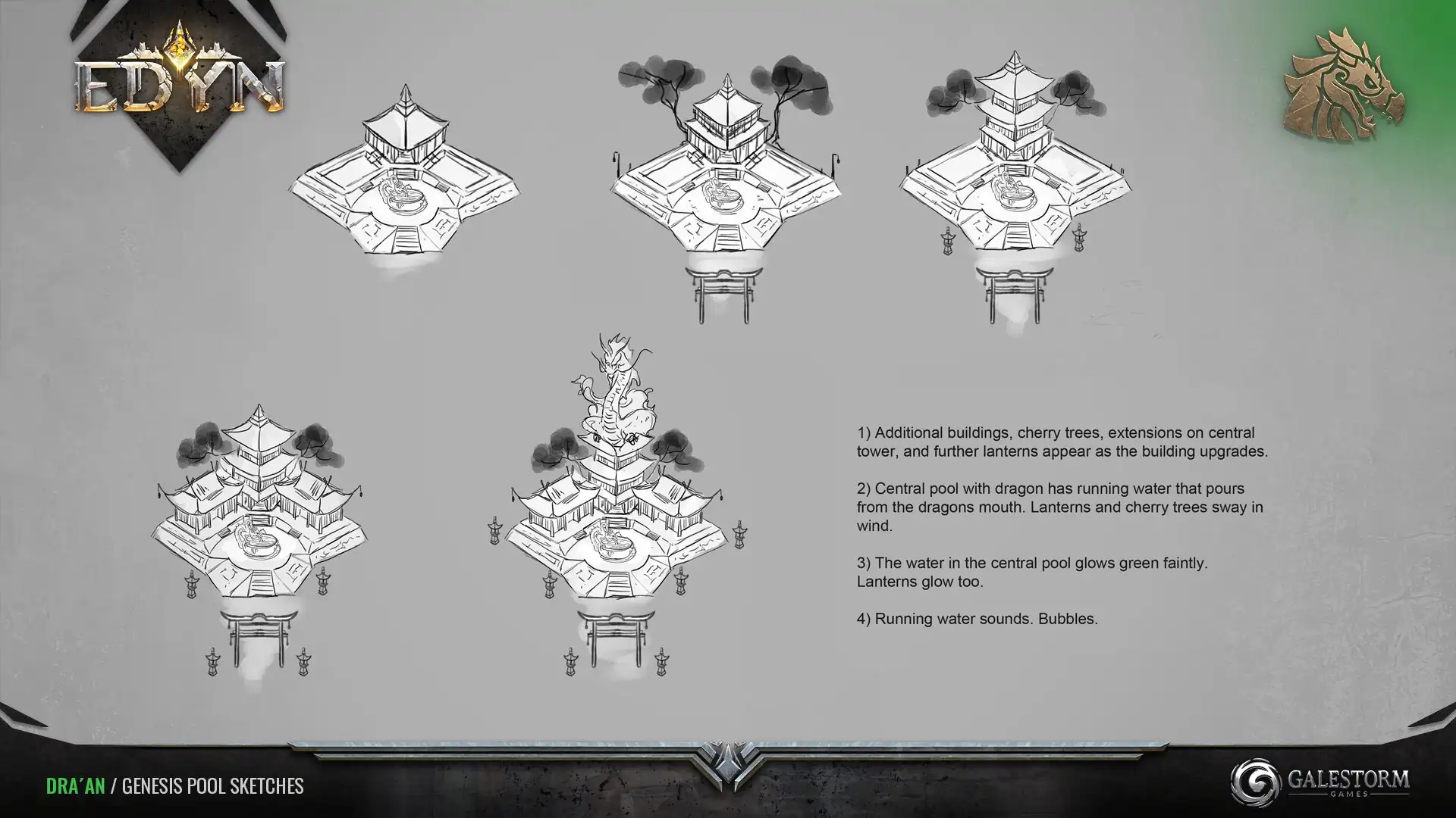 Much of what it means to be Dra'an was lost in the flames during the Great Destruction. A gigantic egg carved from meteoric jade sits at the bottom of these supernaturally clear pools. Those that meditate near it may receive visions of the past, detailing powers new to the present.