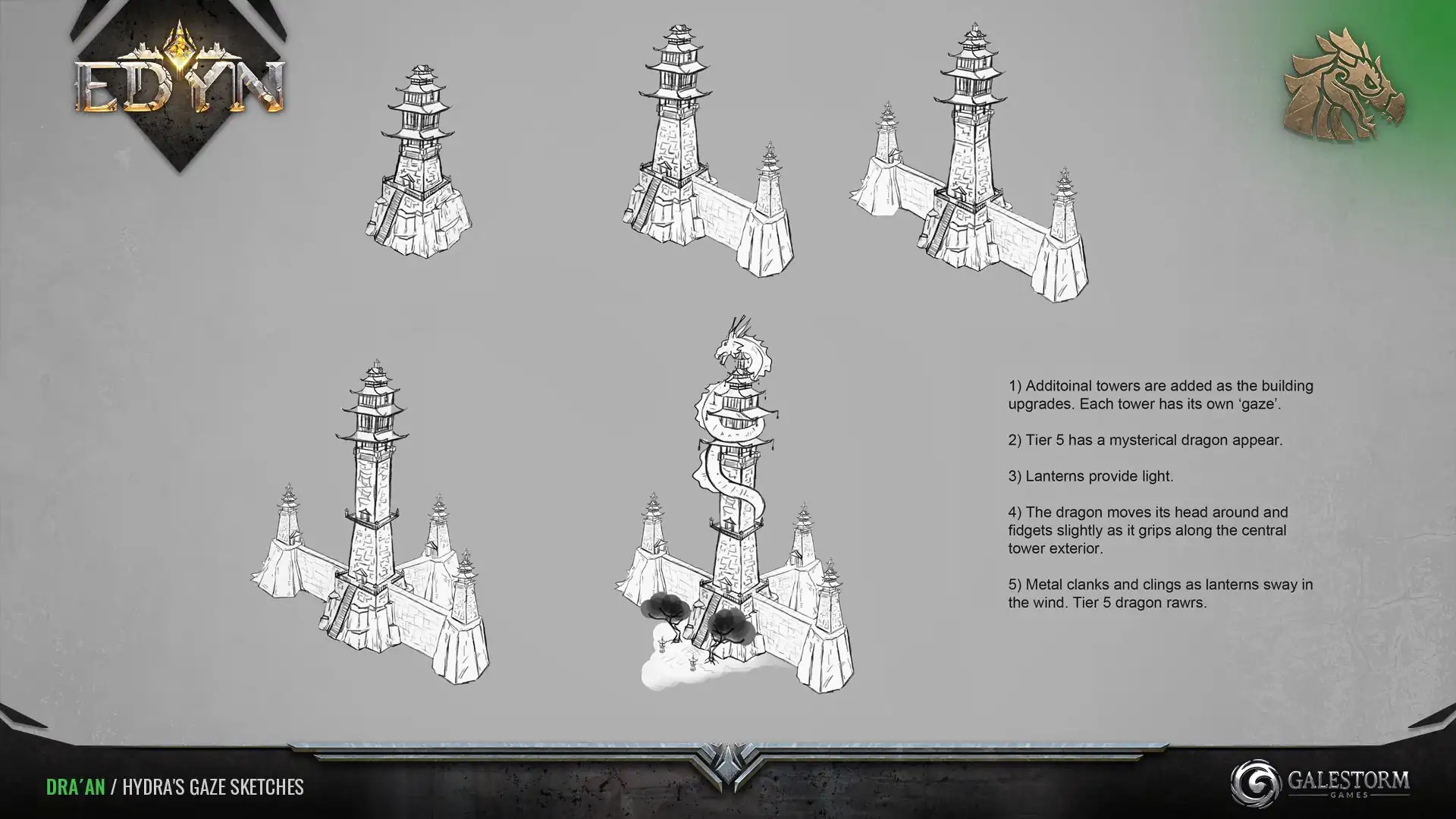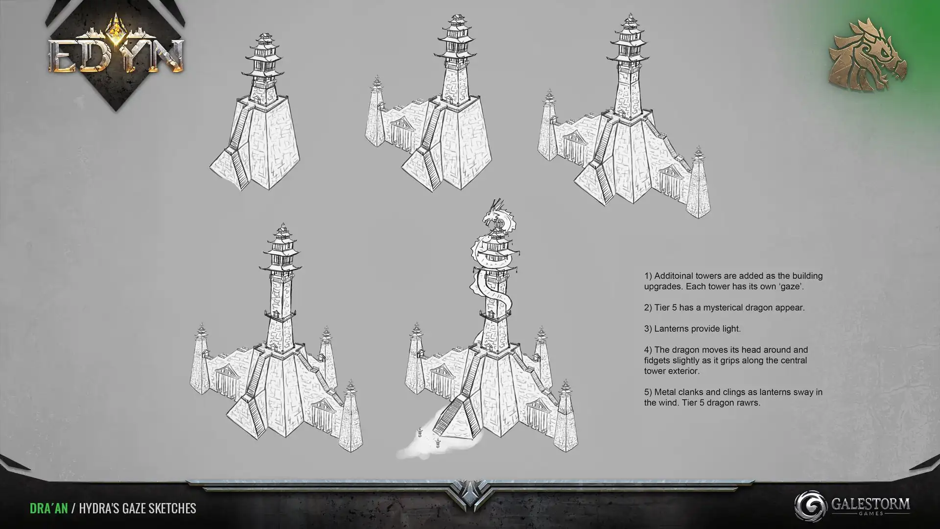 The eyes of the Empire pierce through all; time and the horizon alike. Carved figures, representing the dynasty who has yet to live, stare out towards the borders. When the eyes of these statues meet those of a foe, somehow all Dra'an feel it in their scales.