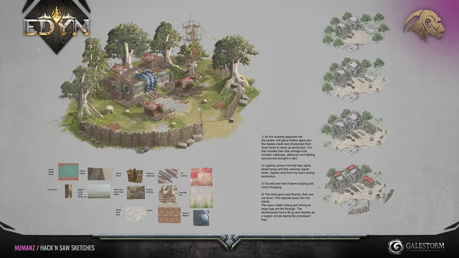Redwood trees grow swiftly in the brave new world of Edyn. The fragrant scent of the wood fills the air as thick boughs are stripped for construction.