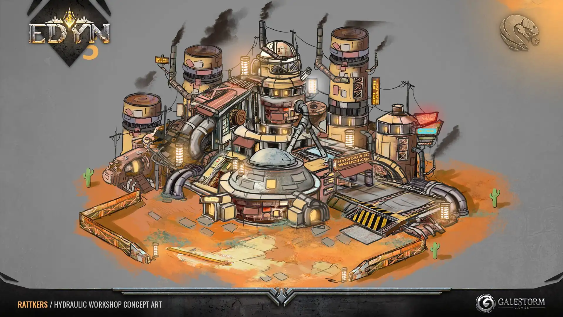 The smell of petrol hangs in the air here almost like an exotic spice. The biggest chunks of scrap metal arrive into the twitchy yet eager coils of Rattler mechanics. Forcing them together into hideous weaponised tractors could be called an art.