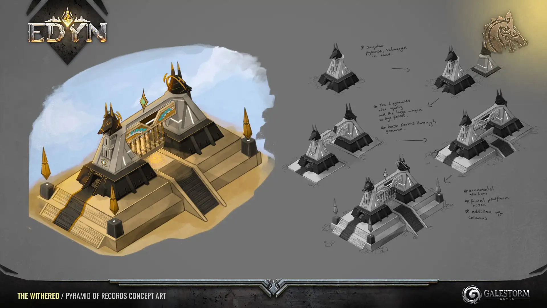 These imposing pyramids contain the collected knowledge of the entire race sealed within their vaults. Their archives are the most well-kept and preserved in all of Edyn. Somewhere, written in their meticulously categorised papyrus scrolls, the power to dominate the other nations lies just waiting to be discovered.