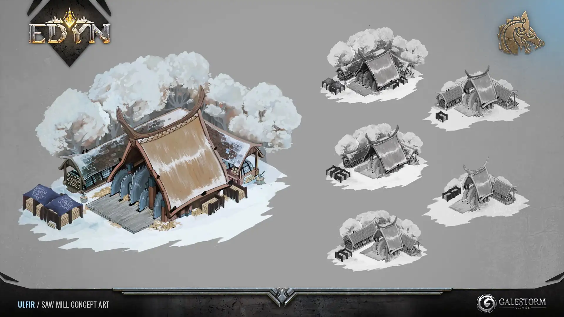 Along the tundra's south side, pale forests line the borderlands. These numerous but spindly trees are collected and dragged back to clan mills, where they are refined by master woodworkers into timber suitable for construction.