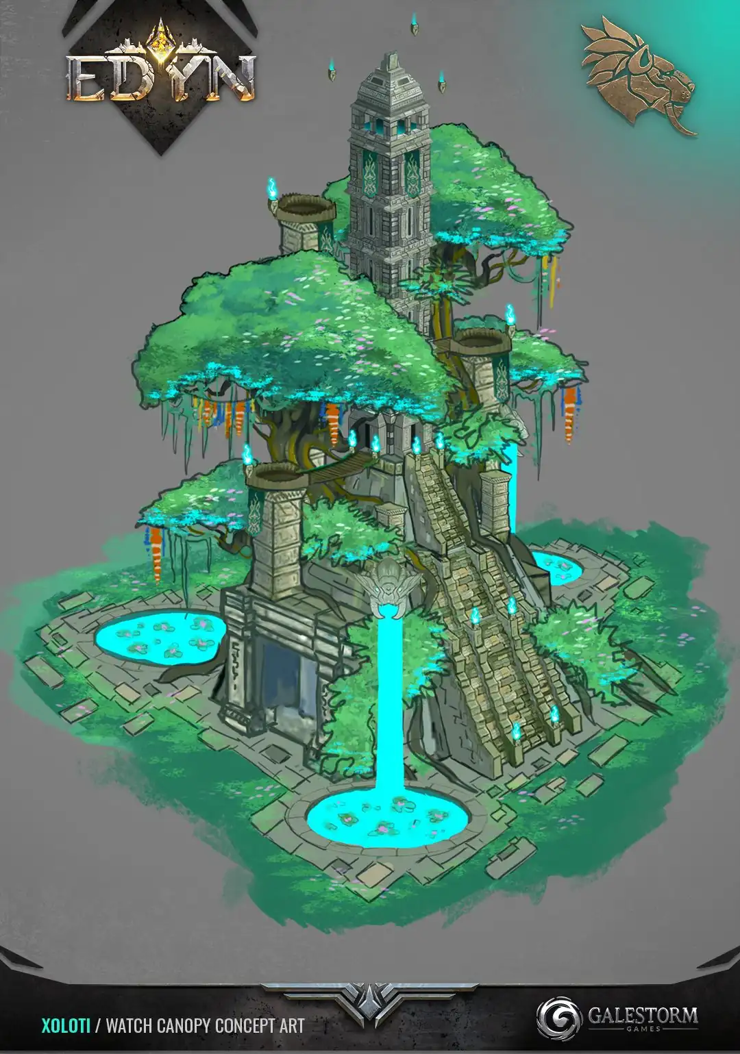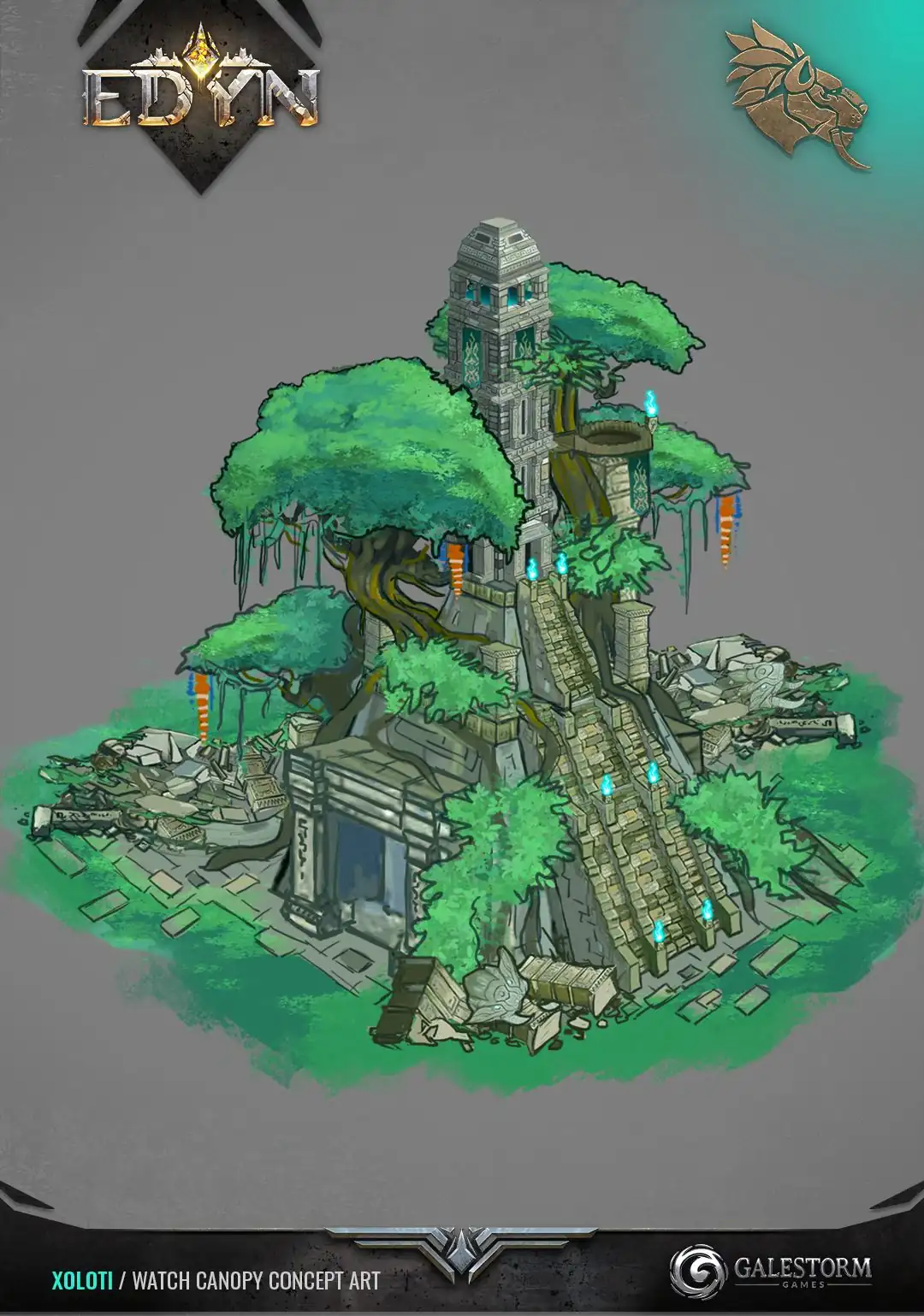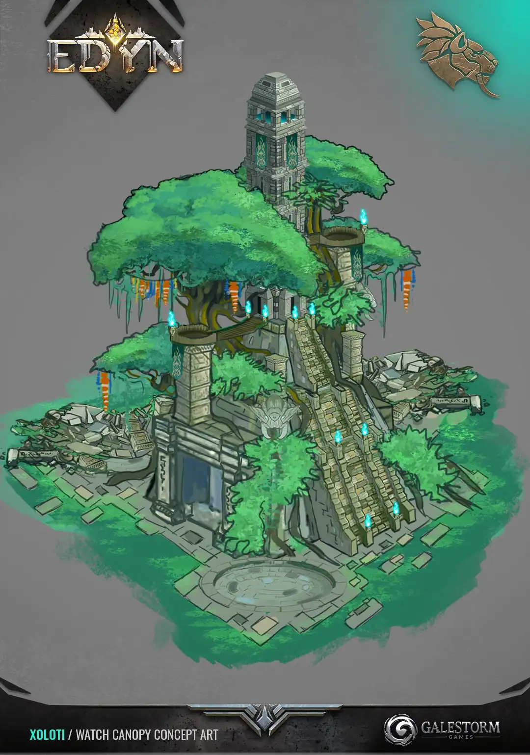 Trees spiral upwards from the top of the tower, playing host to innumerable birds. Their cacaphony is constant, except for when it's not, and that's when the warriors vanish into the brush.